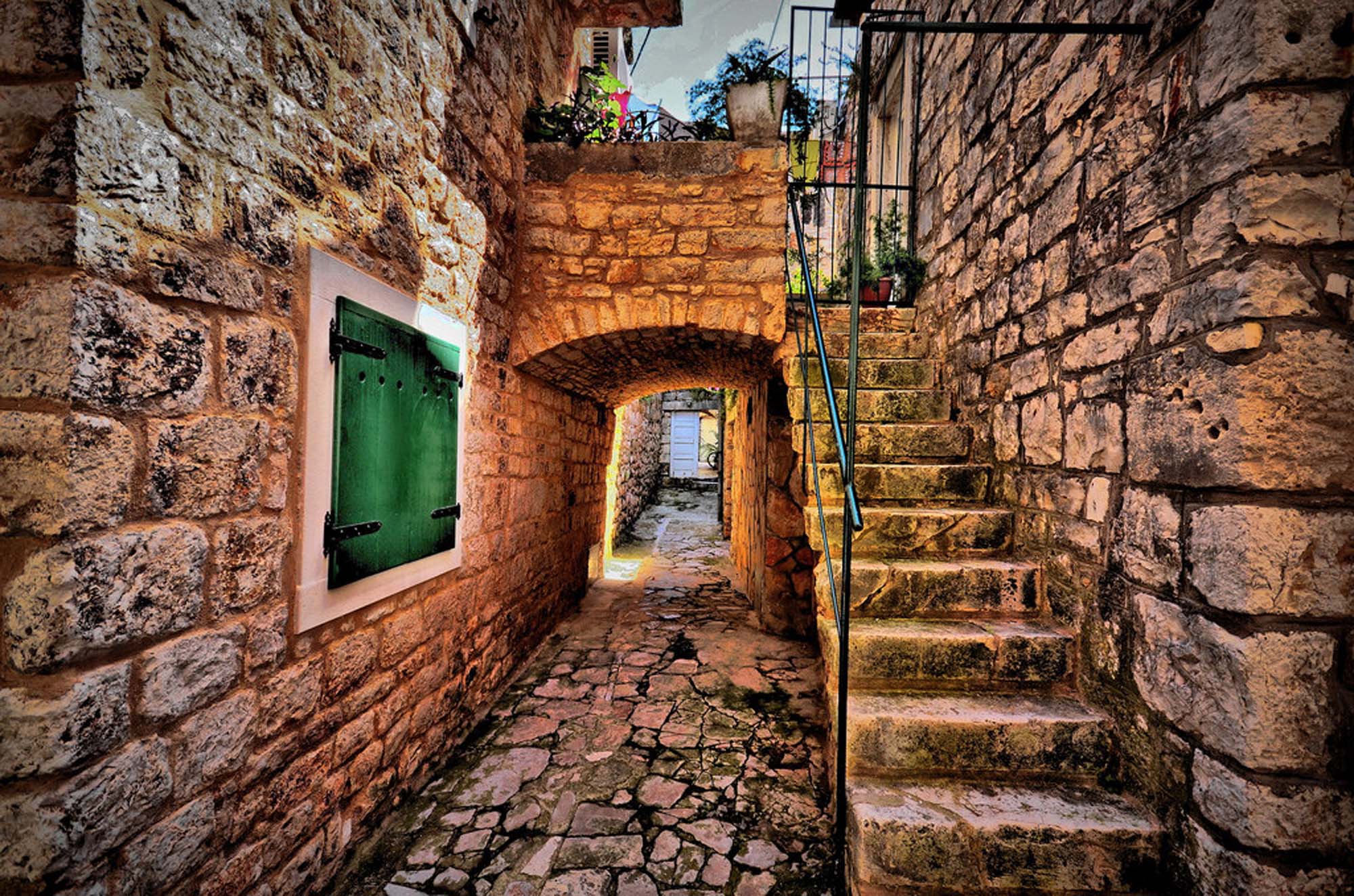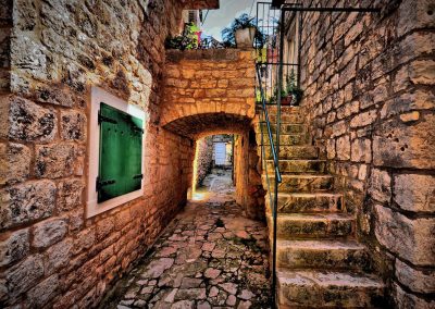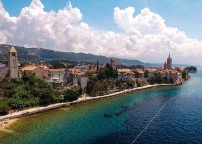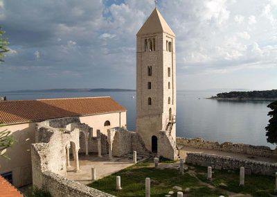 Während des Römischen Reiches stellte die Stadt Rab das kulturelle, religiöse und kommerzielle Zentrum ihrer Region dar und trug den Sondertitel „Felix“ und den Status eines römischen Municipiums. Daher ist es nicht verwunderlich, dass die Altstadt von Rab zu den am besten erhaltenen in dieser Gegend gehört und ihr Anblick von den erkennbaren vier Glockentürmen geschmückt wird, von denen jeder mit seiner Höhe die durchschnittliche Lufttemperatur für jeden einzelnen darstellt der vier Jahreszeiten! Der Kern der Altstadt besteht aus vier Hauptstraßen – Riva, Donja ulica, Srednja ulica und Gornja ulica – die von zwölf kleineren Gassen durchzogen werden, die von der engen Verbindung zwischen Mathematik und Architektur aus dieser Zeit zeugen.